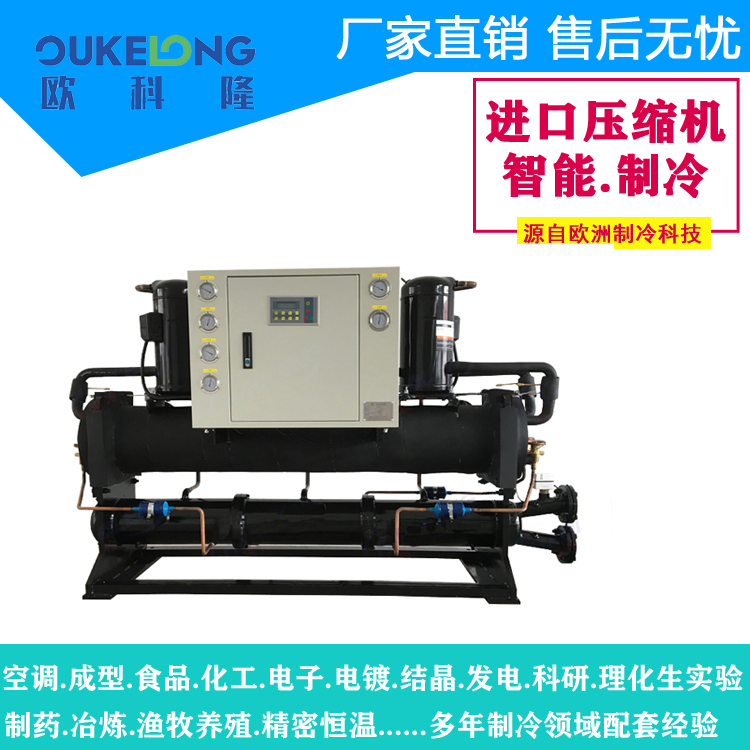歐科隆牌水冷開放式冷水機組適用于化工、電鍍、油墨、光纖、電子、醫療、工業設備冷卻、熱源冷卻、混凝土攪拌站、制造橋梁、(制混凝土、制橋梁專用冷水機型,性能比普通冷水機型高出30%,可以定做移動式冷凍機組)等多種場合。