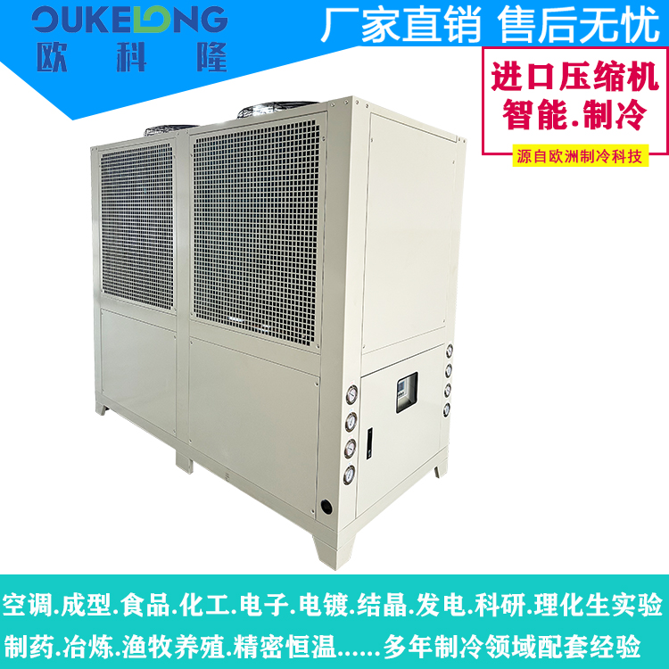 歐科隆制冷科技40HP風冷式冷水機型號:OKL-40AF,是一款大功率工業制冷設備,專為重型制造和連續生產需求設計。該機型采用創新風冷技術,實現40匹(約120kW)強勁制冷量,突破傳統水冷系統限制,顯著降低安裝維護成本。