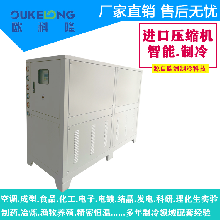 產品說明:歐科隆水冷箱式低溫機適用于化工、電鍍、醫療、混凝土攪拌站、制造橋梁等場合。
