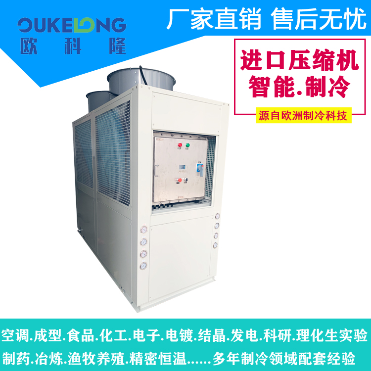 歐科隆40匹風冷防爆冷水機專為石油化工、制藥、新能源等易燃易爆環境設計,通過國家Ex dⅡBT4防爆認證,整機采用全防爆配置,確保高危場所安全運行,為關鍵生產環節提供高效制冷保障。