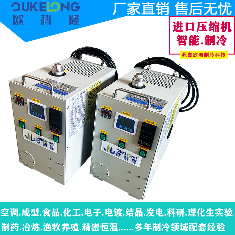 歐科隆制冷自主為國內知名企業研發定制的50W微型冷熱一體測試機是一款緊湊型高精度溫控設備,專為小型電子元件、傳感器、芯片模組等微型器件的可靠性測試而設計。核心特點如下:
